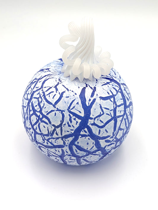 Small Handblown Crackled Glass Pumpkin by Belleau