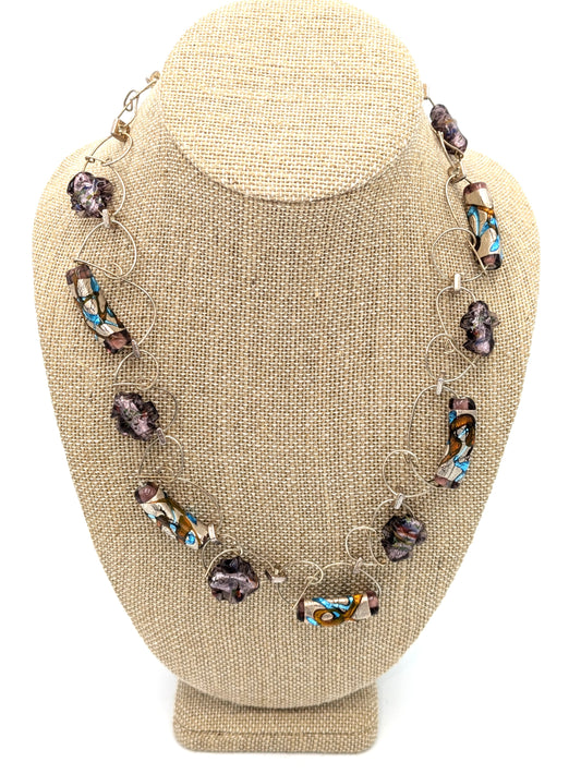 Marble Wrapped Necklace Large White/Yellow Swirl