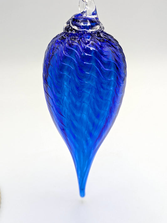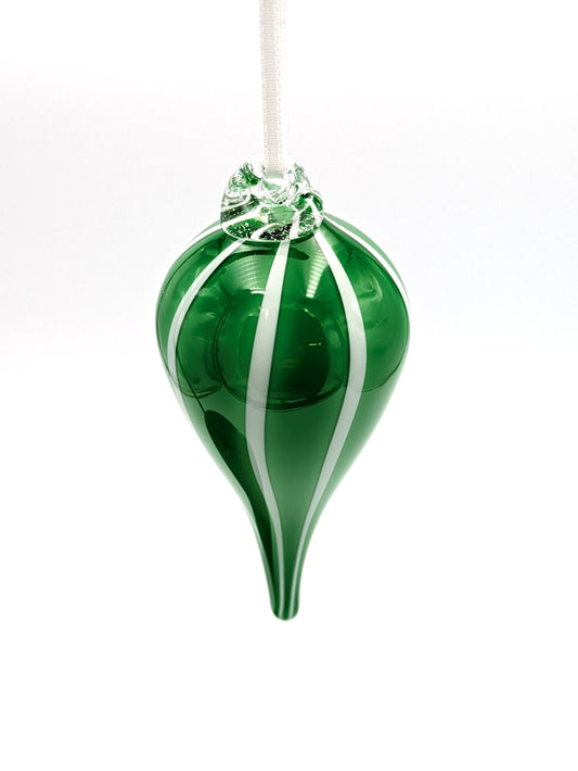 Handblown Glass Teardrop Ornament Spiral by Fritz Glass