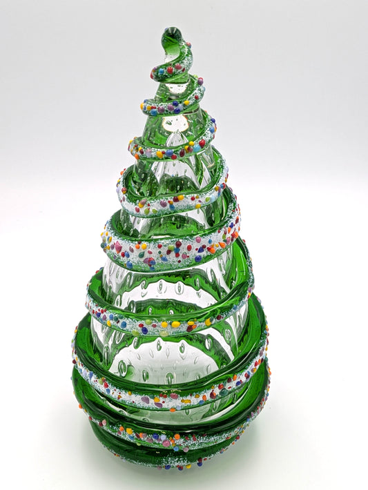 Handblown Glass Christmas Tree 10.5" tall by Belleau Art Glass