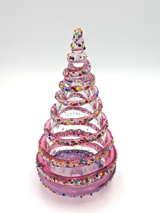 Handblown Glass Christmas Tree 9" tall by Belleau Art Glass