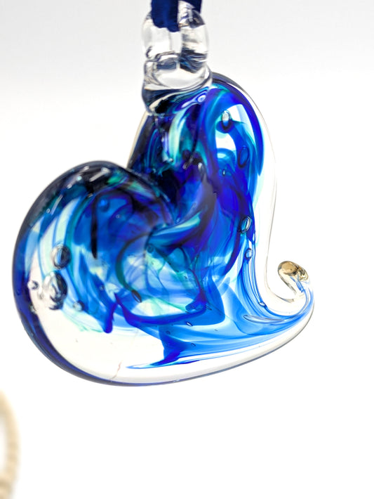 Handblown Glass Ocean Heart Suncatcher / Ornament