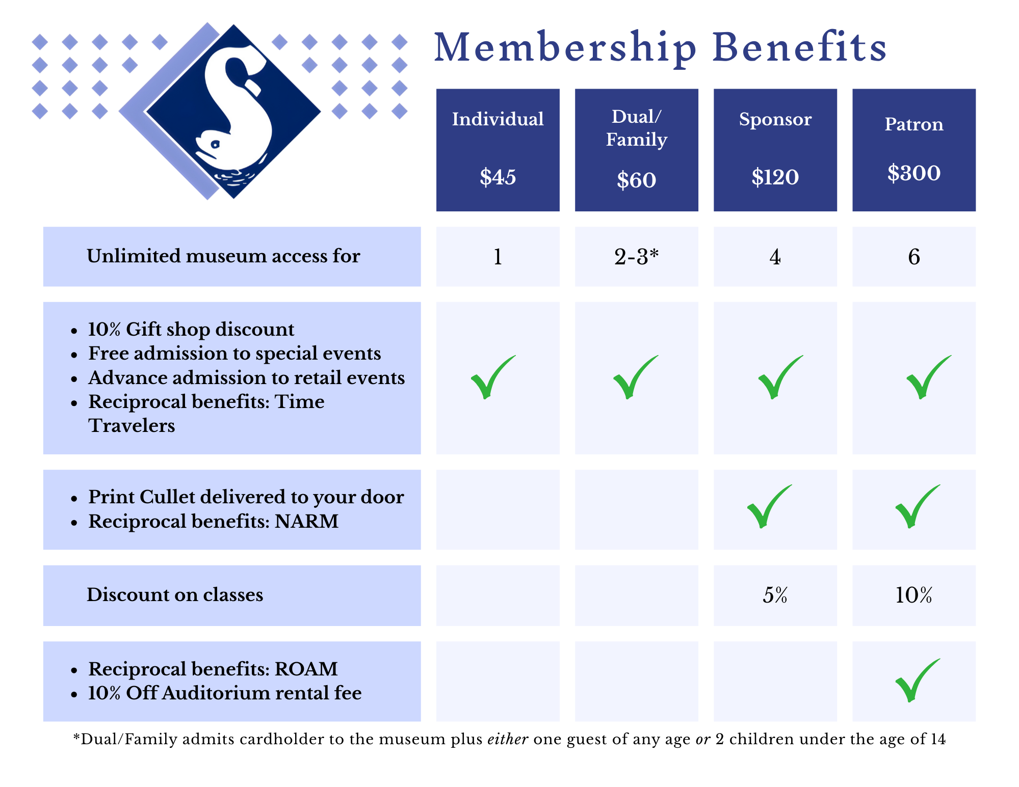 In an effort to keep museum membership accessible to all we are offering a $10 discount to Individual & Dual/Family members who opt to receive the bi-annual Cullet in electronic form only.