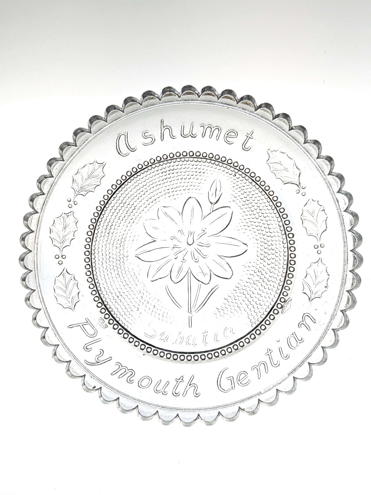 The clear glass cup plates in this collection all have designs that reference the Town of Sandwich in some way. We've priced these at $25, because we're celebrating the bicentennial of glass making in Sandwich, 1825- 2025.