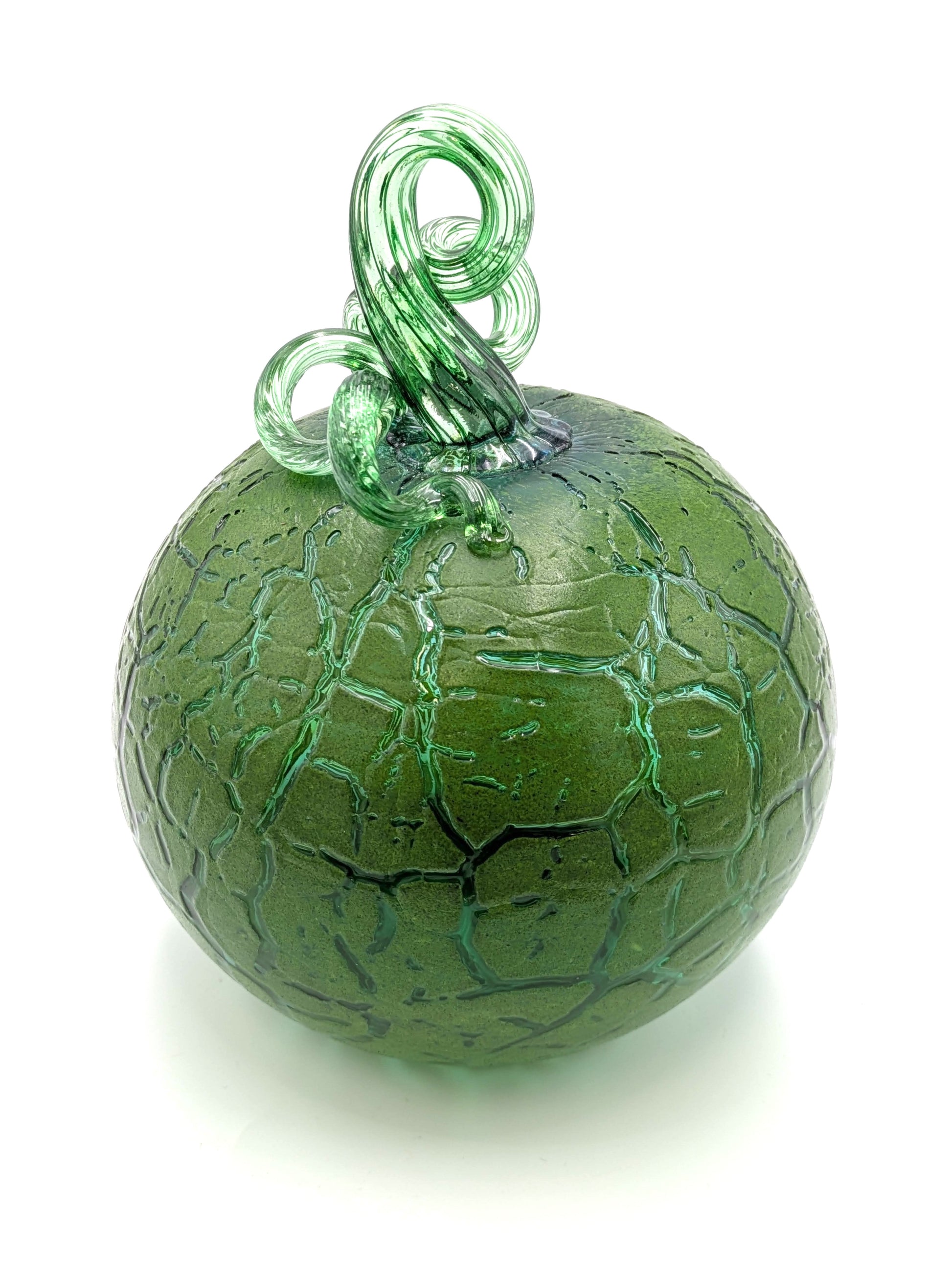 Large Handblown Crackled Glass Pumpkin by Belleau