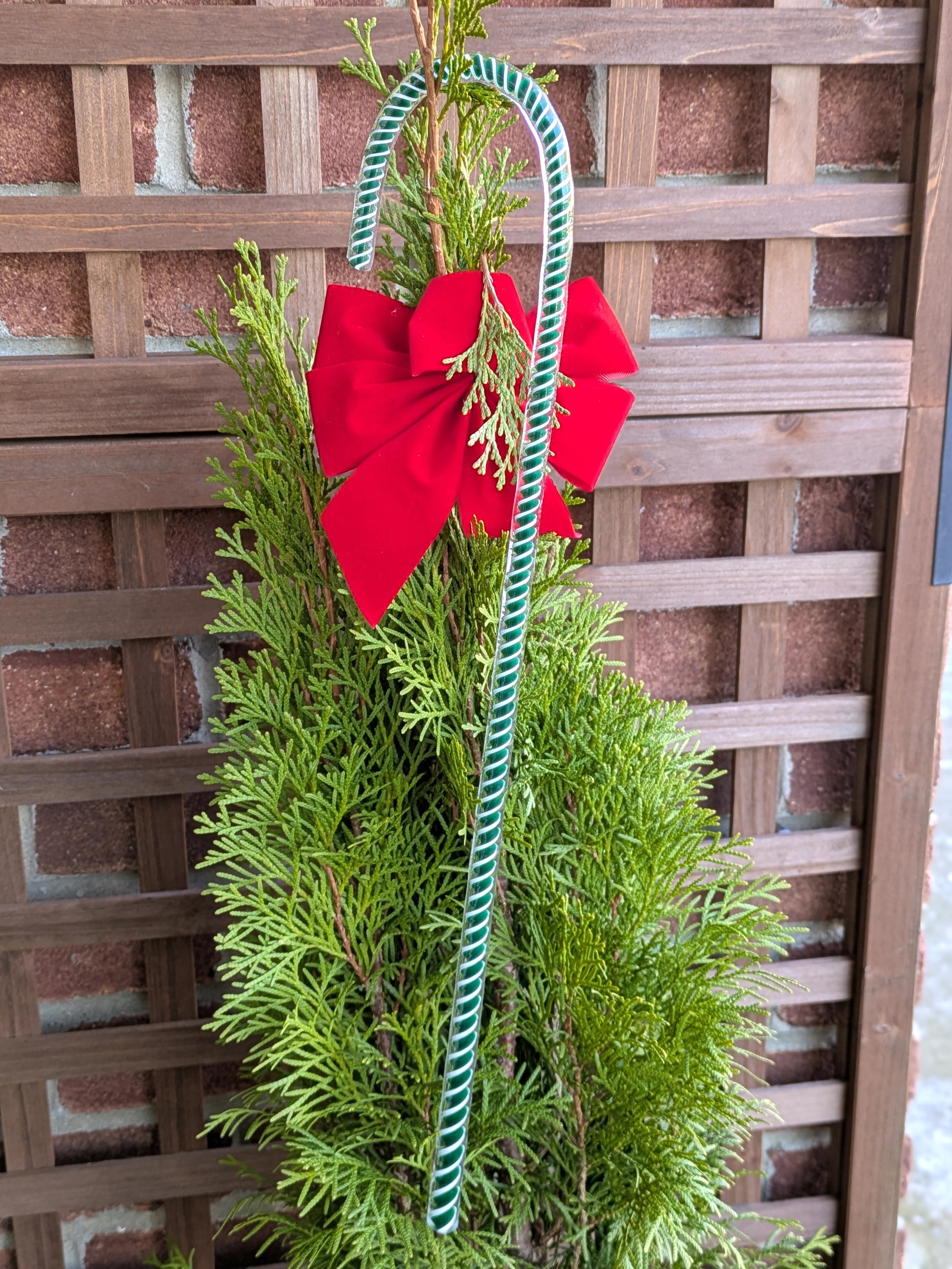 This candy cane measure 17" long by 3.25" at the crook