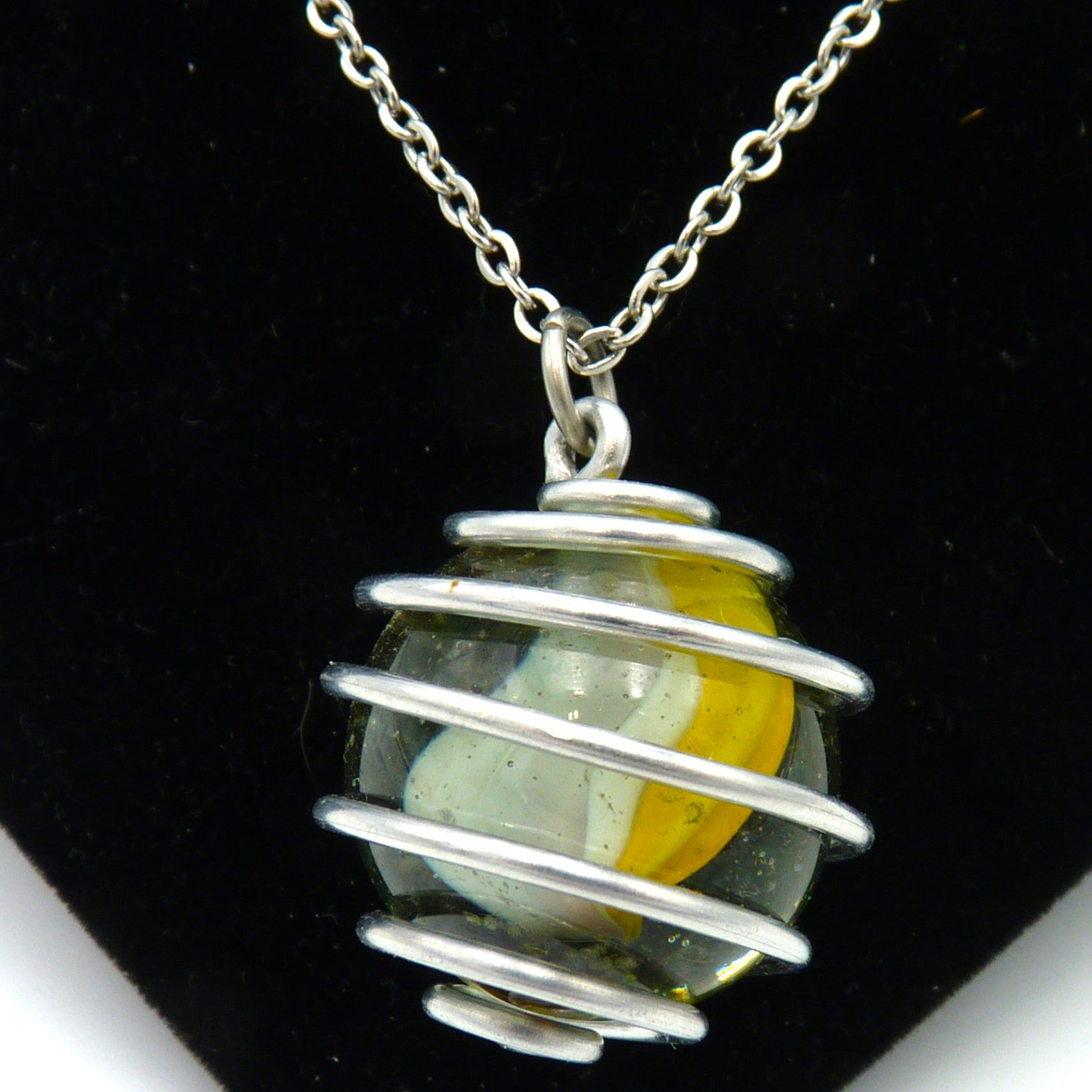 Marble Wrapped Necklace Large White/Yellow Swirl