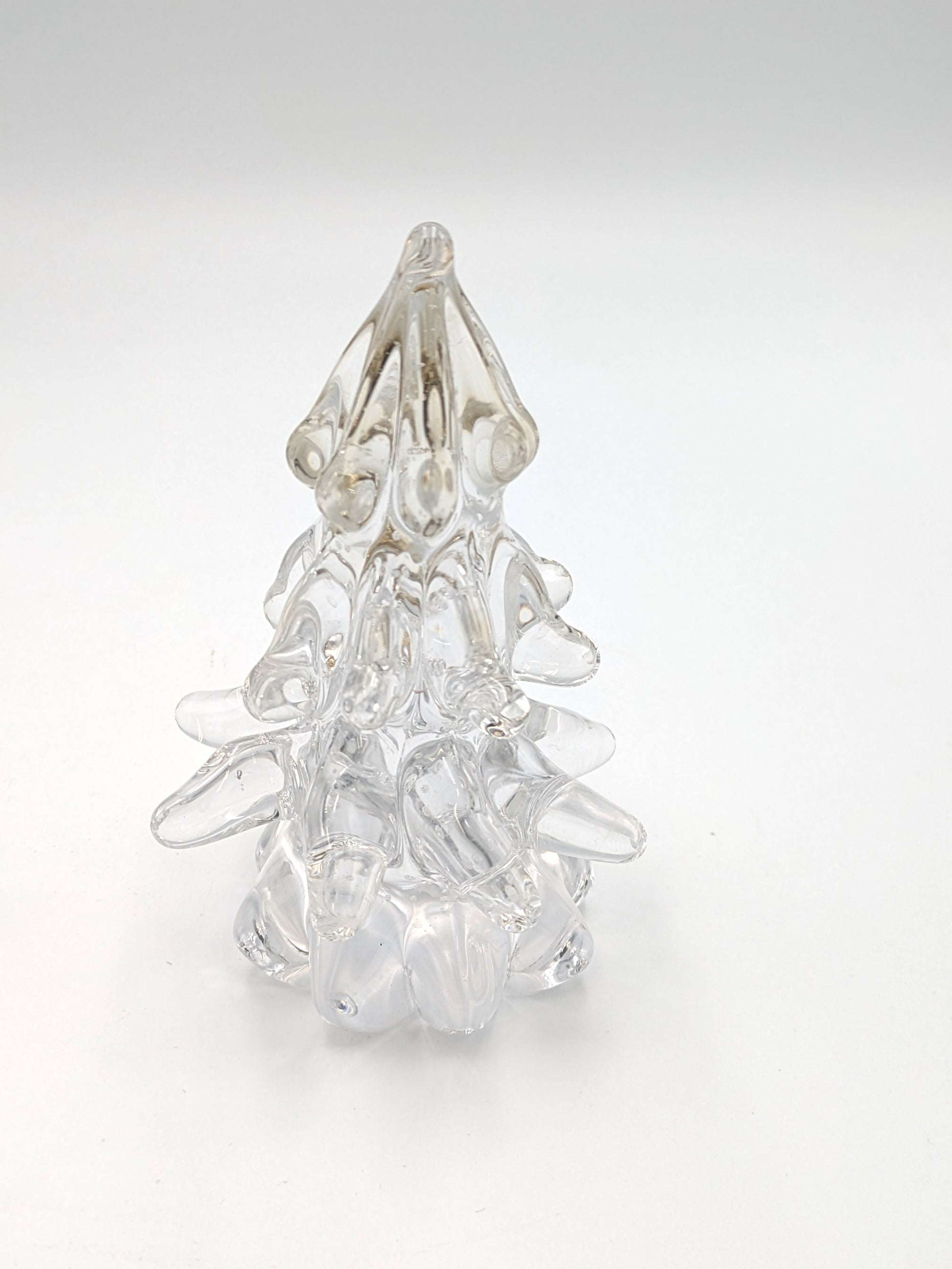 Bring the chilly charm of a snow covered evergreen tree inside with this delightful and unique paperweight. Handblown glass.